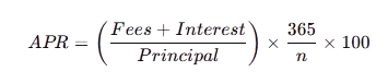 • APR: Shows the annual cost of borrowing, including fees but not compounding.
